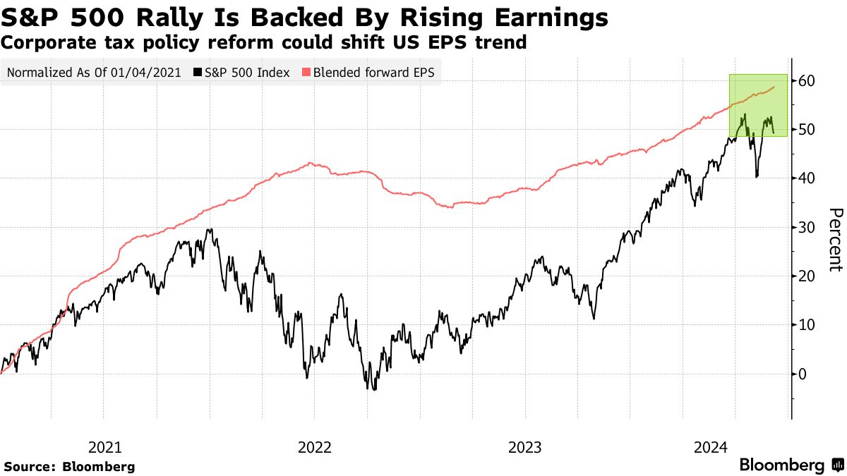 特朗普承诺将联邦企业税率从21%降低到15%,这将使标准普尔500指数的收益增加约4%,策略师写道。哈里斯提议将税率提高到28%,这将使收益减少约5%,同时对外国收入的税收变化和替代最低税率的提高将使收益减少约8%。