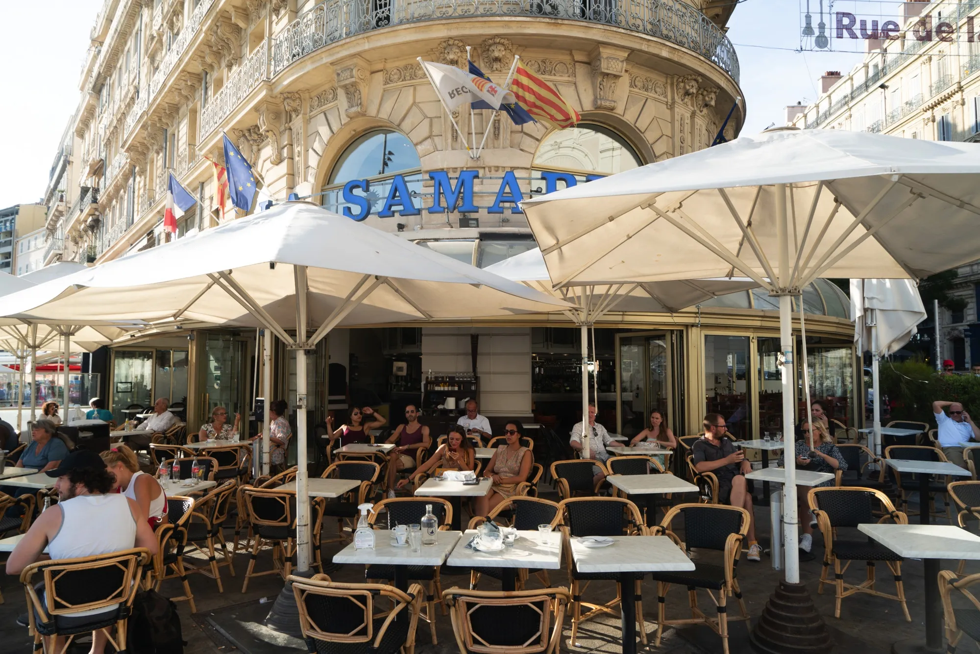 马赛老港的酒吧露台。摄影师:杰里米·苏伊克/彭博社这种开胃酒与马赛有着长期的联系,马赛是马赛奥林匹克的主场,后者是巴黎圣日耳曼的死敌。帕斯提斯是一种带有茴香味的烈酒,加入冰块和水后会变得浑浊,是城市和普罗旺斯地区酒吧露台上随处可见的景象。