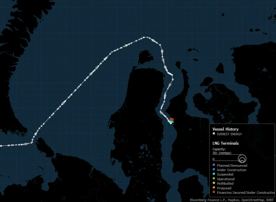 埃弗雷斯特能源公司正准备在俄罗斯的北极液化天然气2号出口工厂停靠。北极液化天然气2号于8月开始出口,使用的是隐藏其位置的船只,这些船只的所有权不透明,具有黑暗舰队的特征,用于规避西方的限制。埃弗雷斯特能源公司上个月已经从北极液化天然气2号接收了一次货物,并且将燃料运送到摩尔曼斯克地区的浮动储存单元。