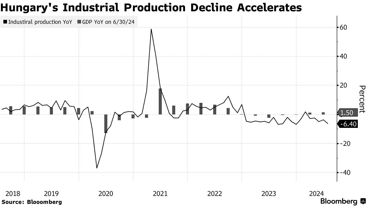 匈牙利经济困境加剧,工业衰退加速 - 彭博社