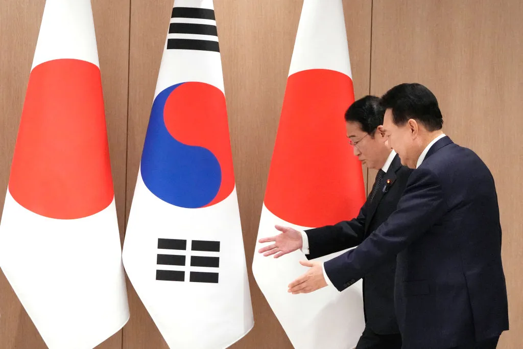 尹作为国家元首与岸田会晤了12次,并推动克服双边问题的措施,包括贸易争端和对日本1910年至1945年殖民统治韩国半岛的持续怨恨。尹在此过程中甚至冒着损害国内公众支持的风险。