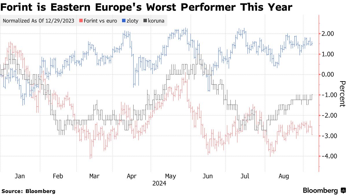 周五,福林对欧元贬值最多达0.5%,标志着其一个月以来最大的周度跌幅,并落后于东欧的同行。由于经济刺激和货币政策的反复紧张,福林在2024年的大部分时间里表现不佳。