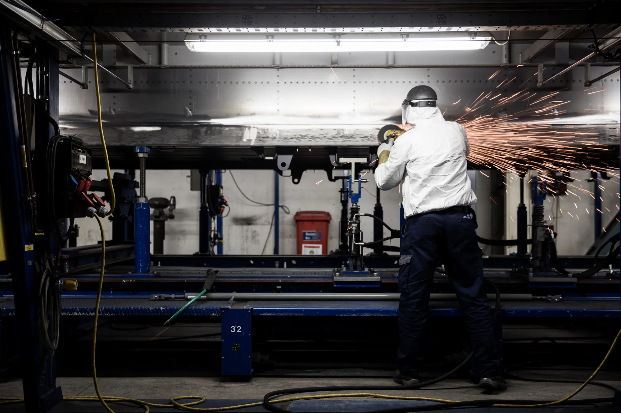 一名工人在西门子铁路工厂的生产线上制造用于铁路车厢的零件。