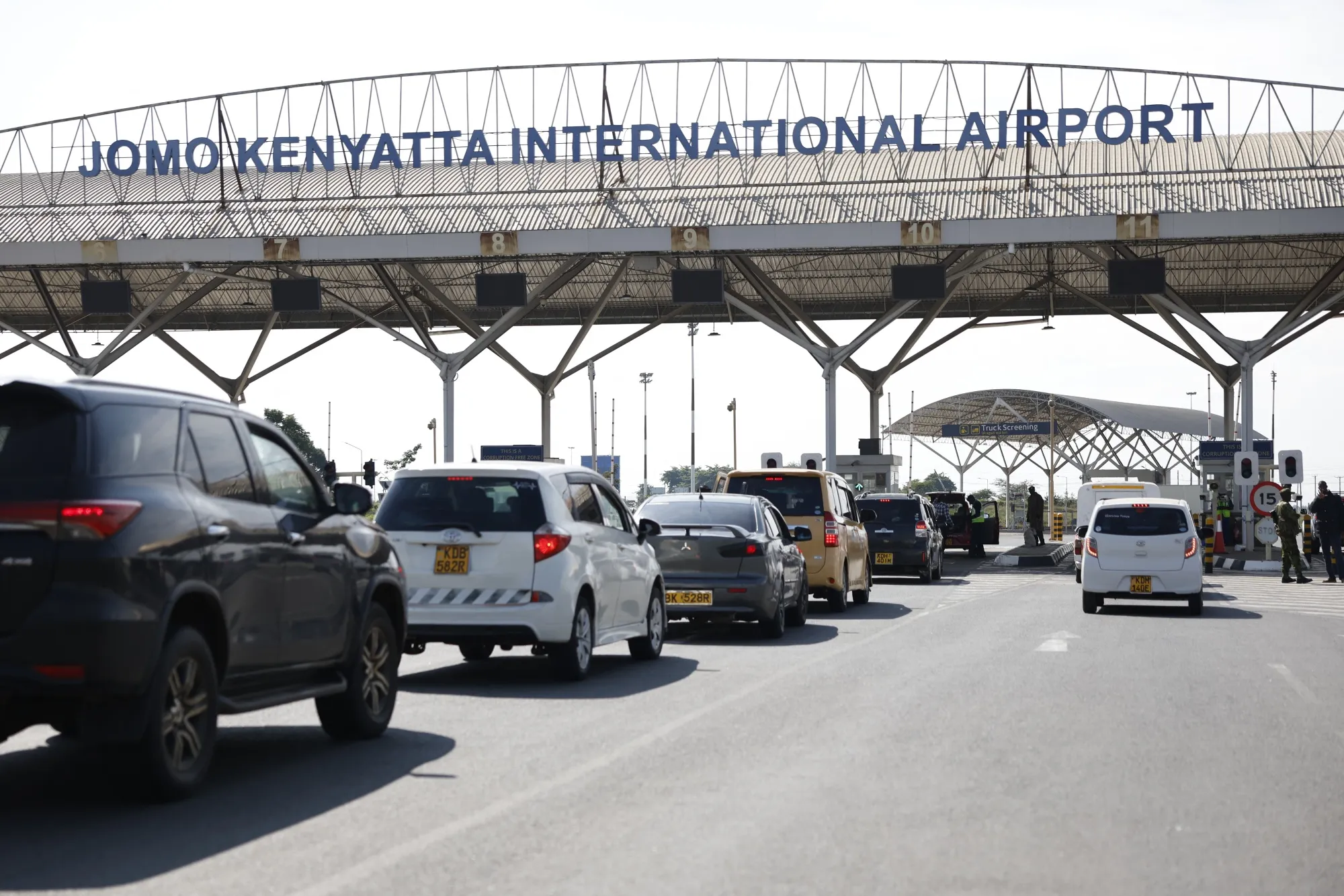 汽车在肯尼亚内罗毕的乔莫·肯雅塔国际机场入口排队。