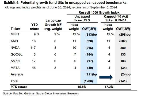 Kostin展示了如何重新制定指数规则以增加市值上限将使指数看起来更像平均共同基金投资组合,管理者不愿意将太多鸡蛋放在一个篮子里。