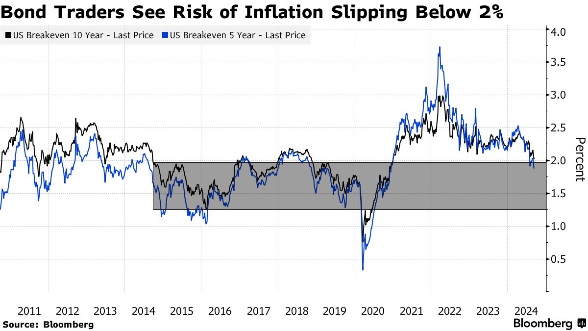 在美联储与通货膨胀斗争的两年中,债券投资者正面临一种新风险:消费者价格增长正在过快放缓。