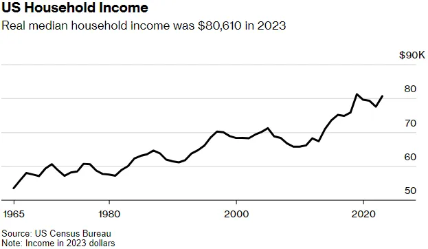 美国的通胀调整后家庭收入在 去年首次上升,自2019年以来,但仍未完全恢复到疫情前的水平。