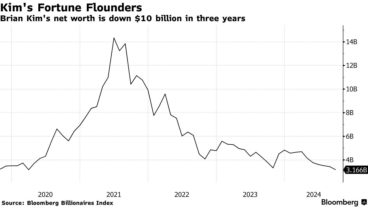 在某个时刻,金——作为一个男孩与七位家人共用一个房间——短暂地超越了三星电子公司的执行主席李在镕,成为该国最富有的人。自那时以来,他的财富已经暴跌,从高峰的超过140亿美元降至本周约32亿美元。