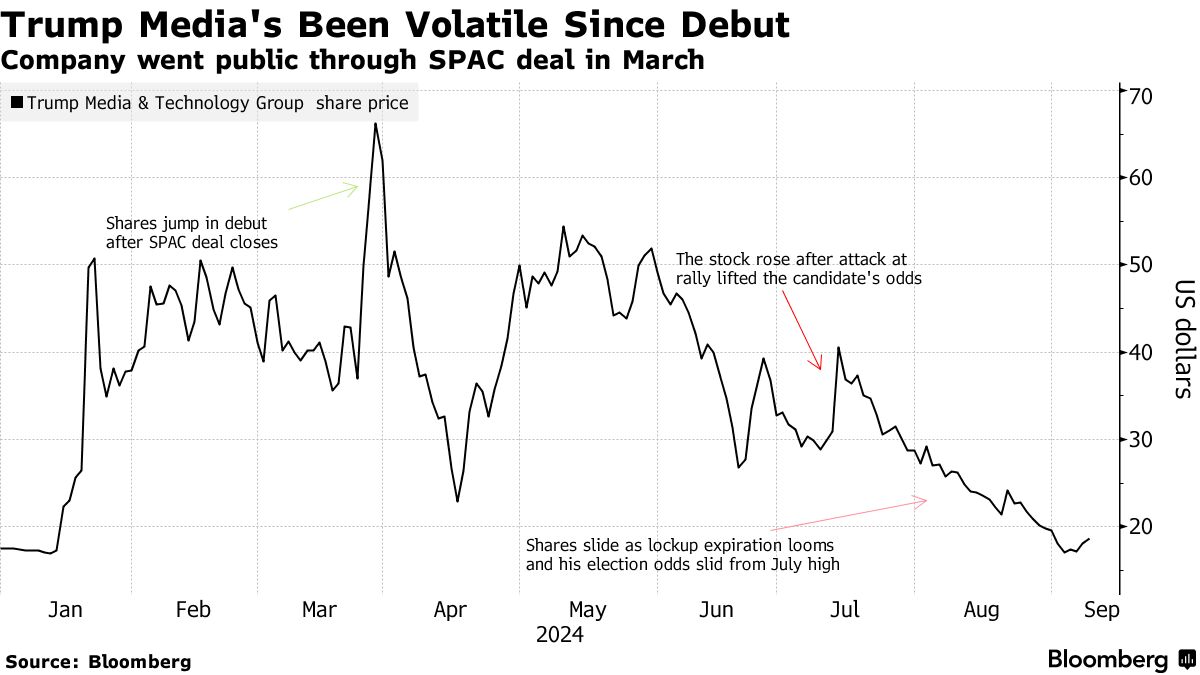 特朗普媒体股价在辩论后下滑,锁定期到期在即 - 彭博社