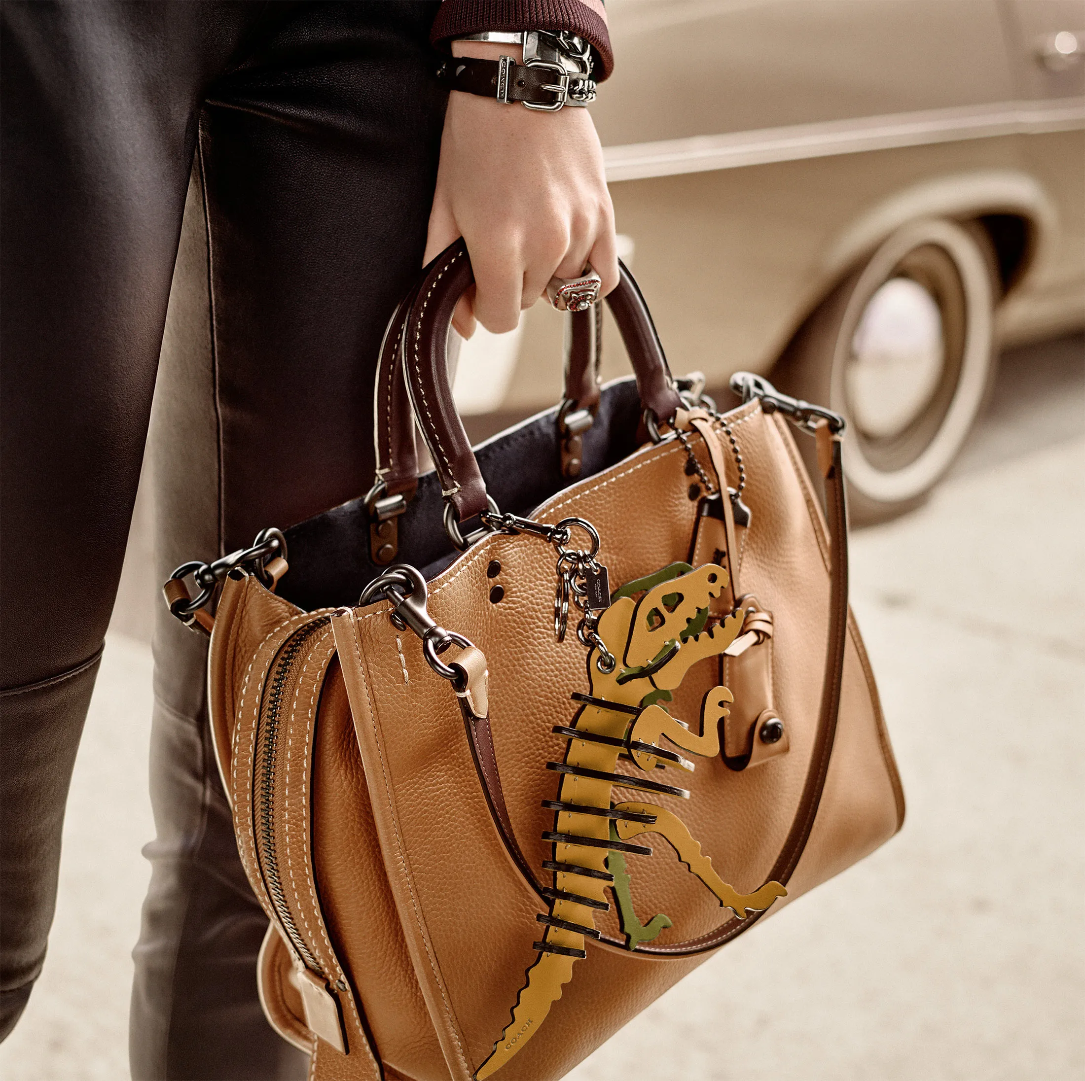 一款带有Rexy包饰的手套鞣制皮革Coach Rogue包。来源:商业电讯为了进一步说明客户有“数百个”手袋品牌可供选择,她提到了Lululemon Athletica Inc.,这家运动服公司最近将一款斜挎尼龙腰包变成了6亿美元的业务。