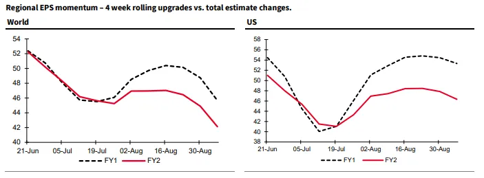 彭博社观点为什么生病的德国正在支付以减少病假脱欧烧伤了英国和欧盟,但这种关系可以挽救马里奥·德拉吉和联合信贷能否复兴欧洲的银行?大型科技公司的轻松日子即将结束哈内特指出的另一个问题是,如果经济状况如债券市场所暗示的那样糟糕,你会期望企业利润已经受到压力,信用违约率上升。但这并没有发生。最新的盈利动量监测——预测变化中向上而非向下的比例——在这里由法国外贸银行的安德鲁·拉普索恩编制,今年仍略有上升: