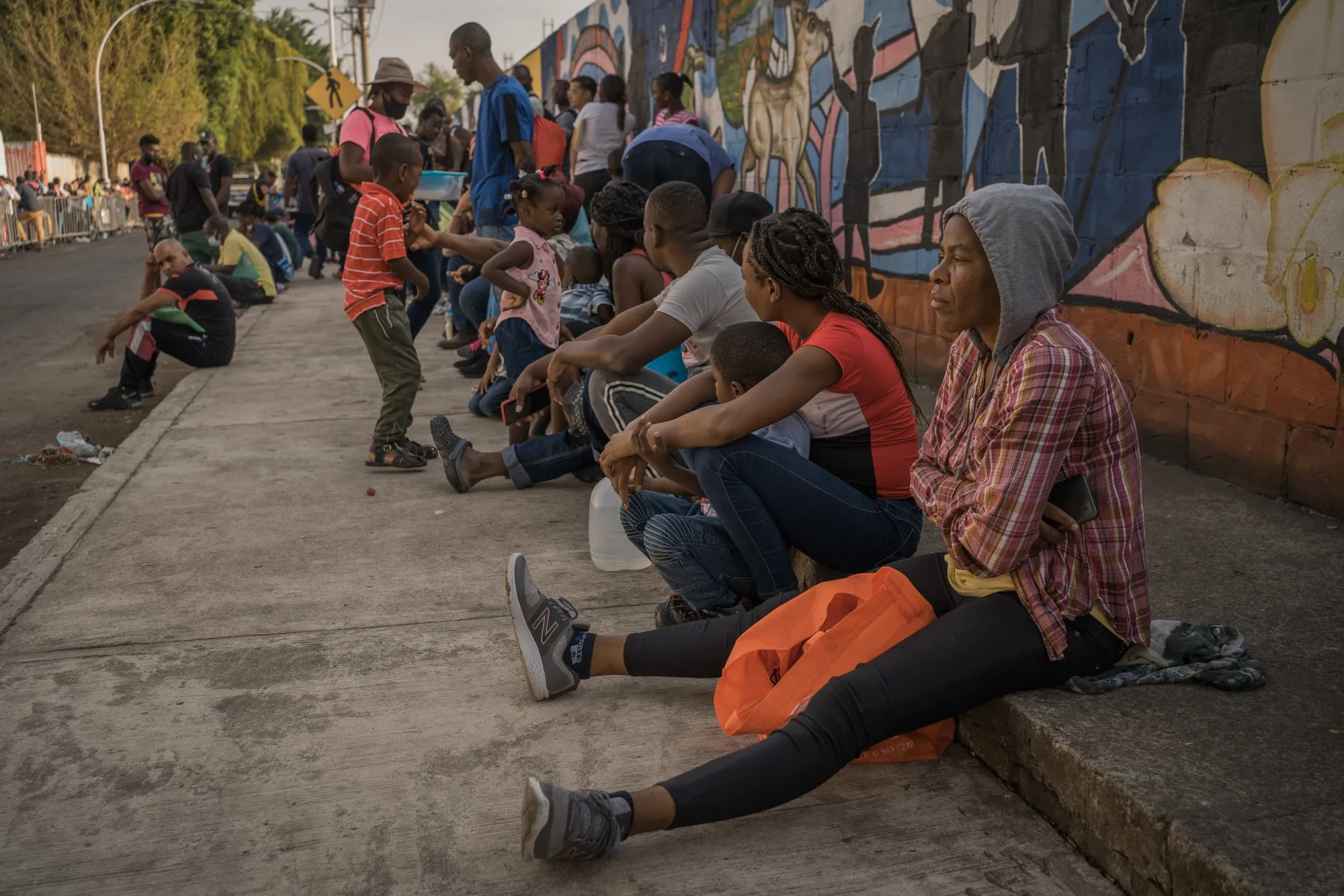移民在2022年等待在墨西哥难民援助委员会外。气温上升将导致前往西欧和北美的难民和移民增加,伯尔霍夫基金会执行董事安德鲁·吉尔莫表示。