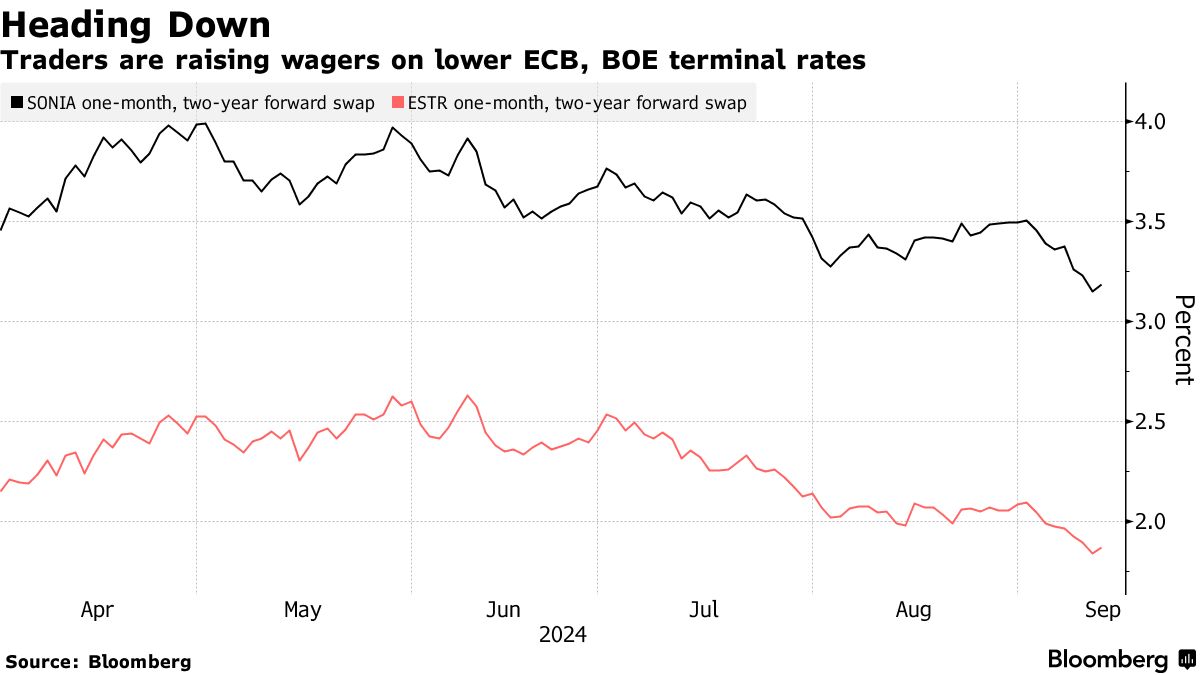 高盛预计由于经济增长疲软,欧洲央行和英国央行将加快降息步伐 - 彭博社