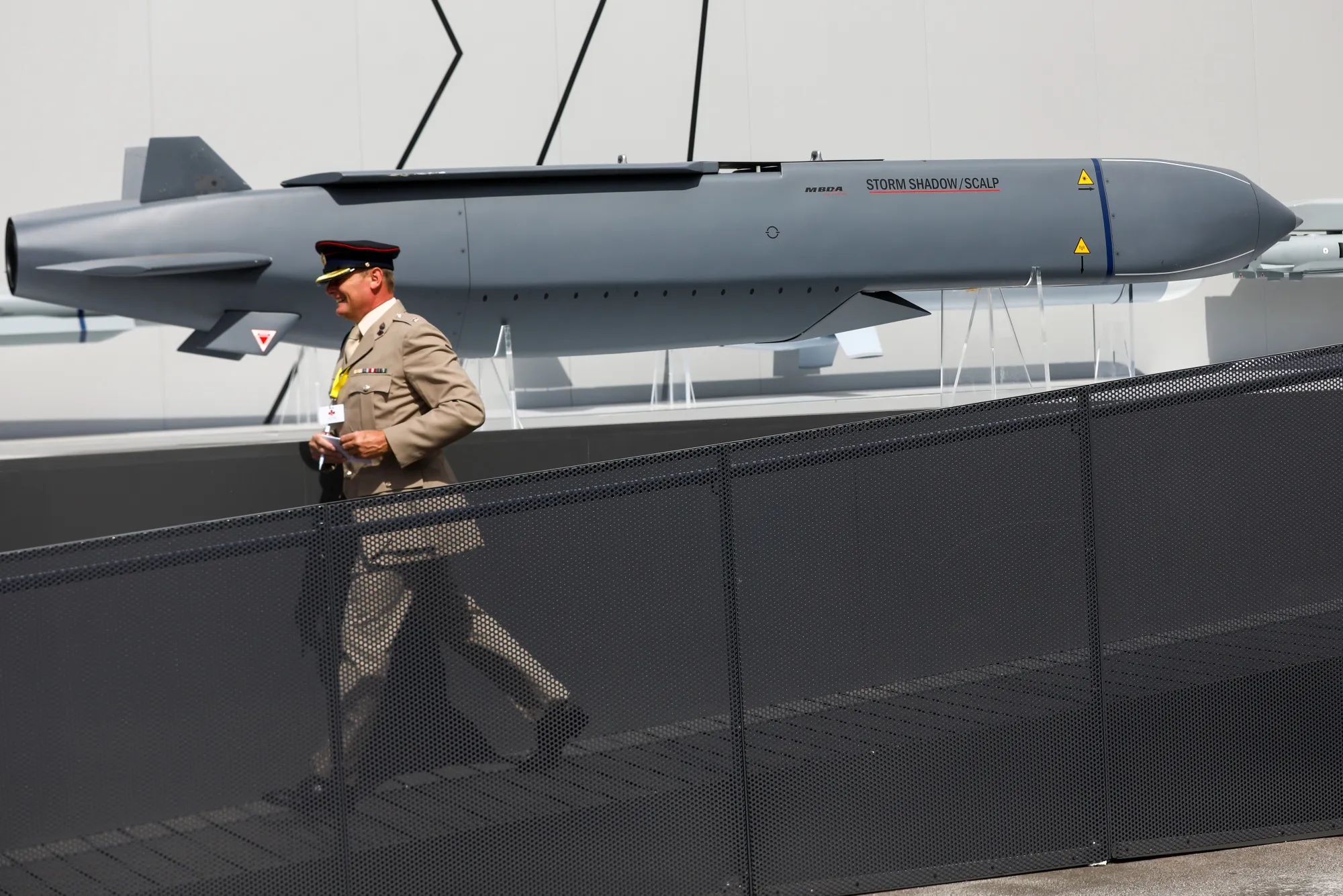 一枚风暴阴影导弹。摄影师:西蒙·道森/彭博社据知情人士透露,美国和英国政府正在讨论允许乌克兰部署由美国导航数据支持的英国巡航导弹,以在俄罗斯境内进行远程打击。