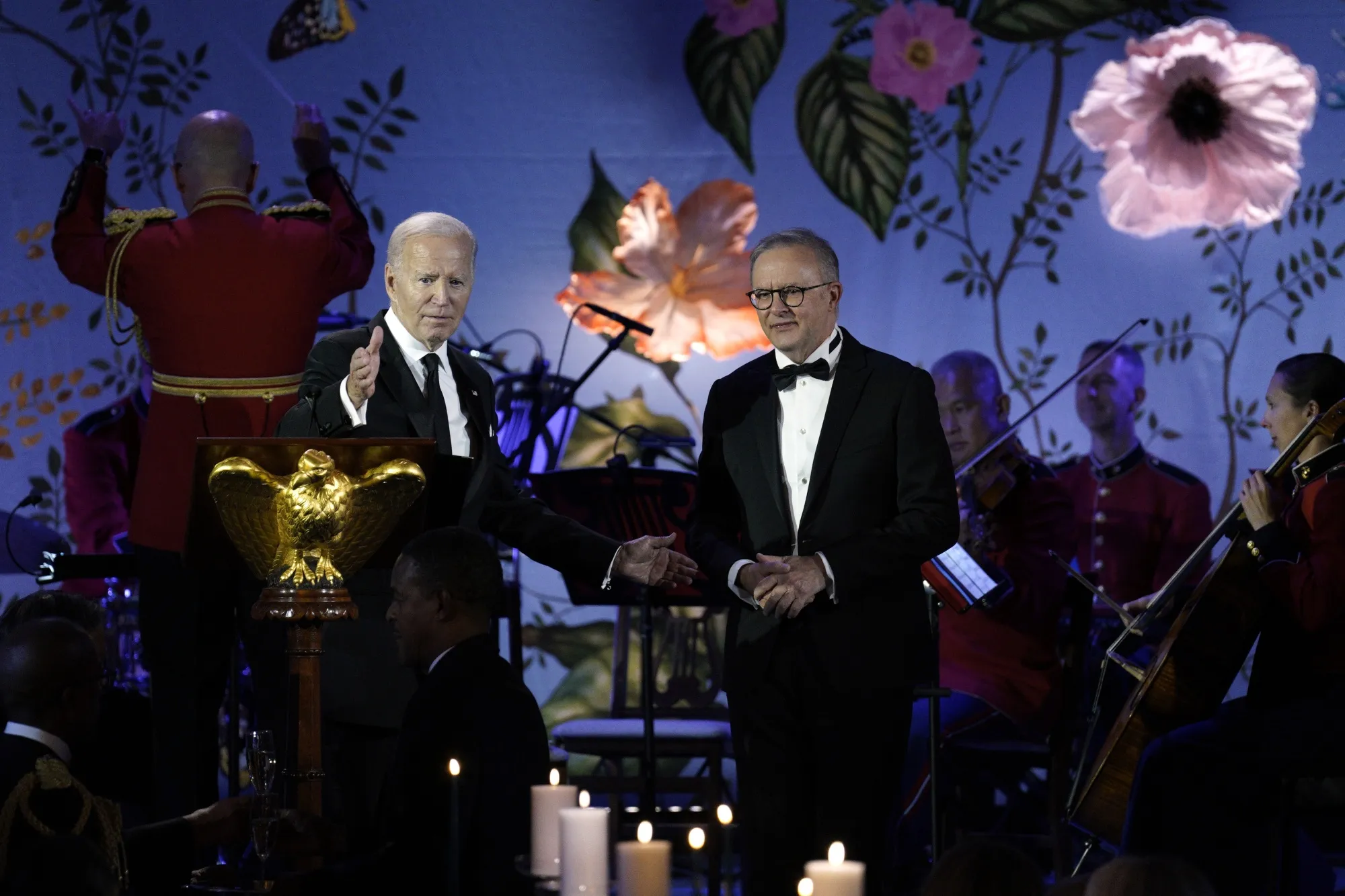 美国总统乔·拜登(左)与澳大利亚总理安东尼·阿尔巴尼斯在2023年10月华盛顿特区的国宴上。