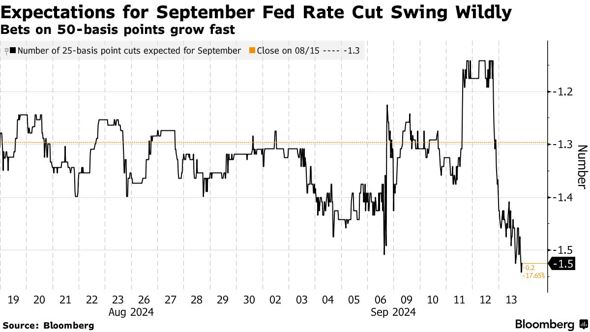 “美联储下调50个基点以应对经济疲软可能会扰动市场,可能在年末临近时引发波动,”他说。“另一方面,如果在有利的通胀数据的回应下进行50个基点的降息,并伴随中央银行家的安抚性沟通,这可能会提振风险资产。”