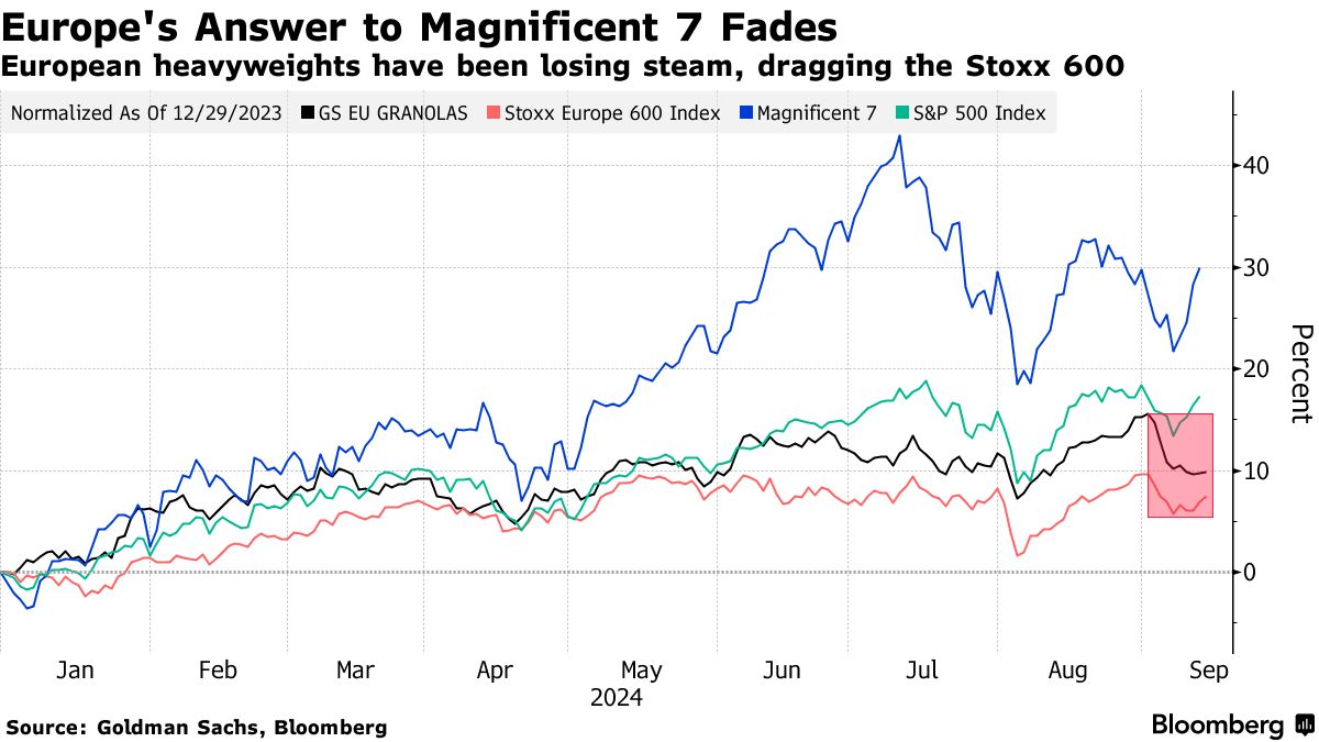 今年以来,投资者已从以欧洲为重点的基金和ETF中撤回数十亿美元,这与大量资金流入美国和国际股票基金形成鲜明对比。一个关键问题是,该地区上涨的主要驱动因素已落后于美国的“七大科技巨头”。