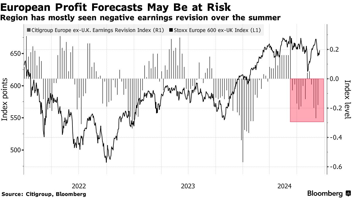 该地区的利润预期确实可能面临风险。花旗集团的盈利修正指标,考虑了利润的上调和下调,在夏季大部分时间里都是负面的。