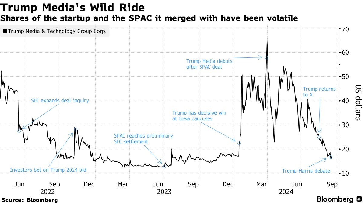 也就是说,特朗普几乎没有做任何事情来激励投资者支持他的公司。他在8月12日回到埃隆·马斯克的X上,发布了100多条信息。在前总统与民主党人卡马拉·哈里斯的令人失望的辩论后,特朗普媒体的股票在周三暴跌超过10%。