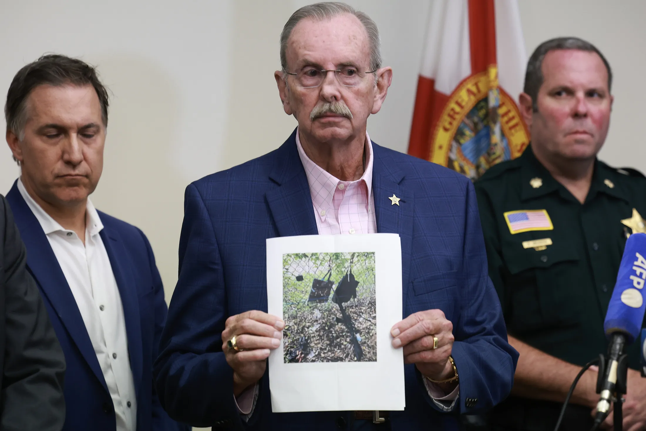 棕榈滩县警长里克·布拉德肖,手持周日发现的一把步枪和其他物品的照片。来源:Getty Images North America被拘留的嫌疑人被确认是瑞安·劳斯。根据CNN的报道,这名58岁的男子有八次逮捕记录,显然与较轻的罪行有关。根据NBC的报道,他在2002年因持有机枪而被判刑。