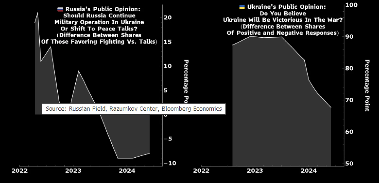 俄罗斯和乌克兰对战争的支持逐渐下降