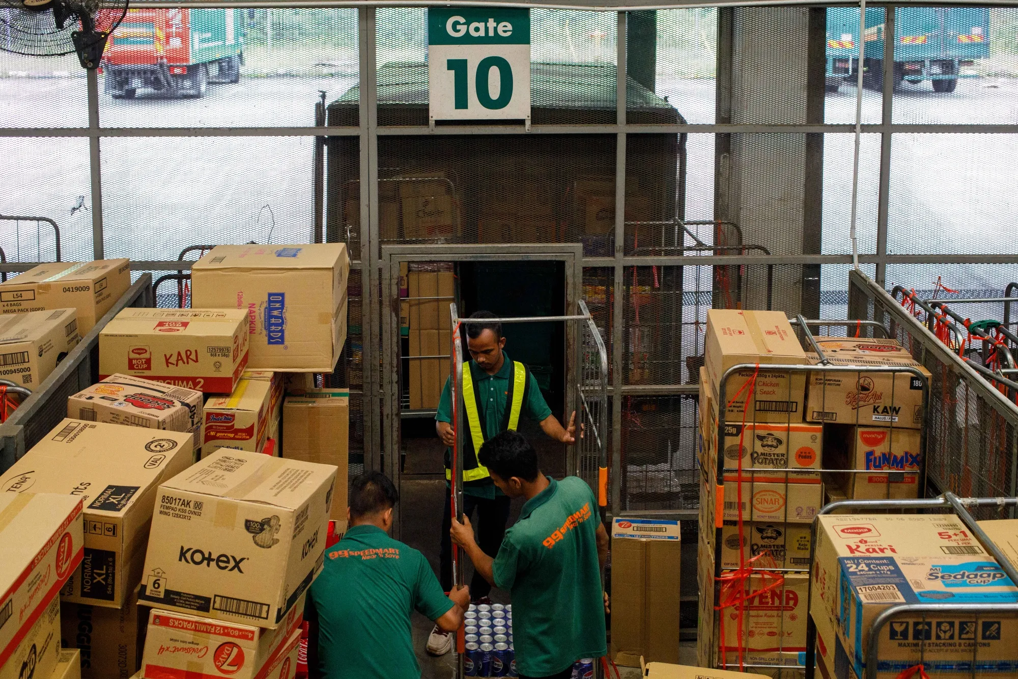 工人们在Chembong的99 Speed Mart仓库搬运货物。摄影师:Samsul Said/Bloomberg“我正在寻找参与其他投资的方式,但这些投资不会取代99作为我的主要业务,”李说。“我的时间和精力,大部分仍然会投入到99。”