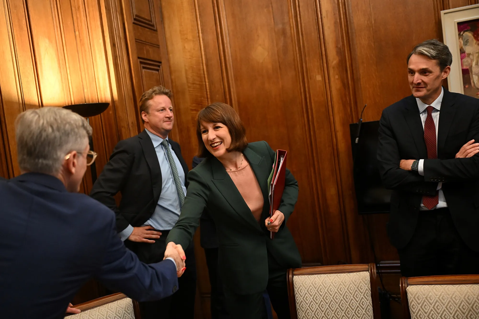 英国财政大臣瑞秋·里夫斯(中)在7月9日伦敦唐宁街11号国家财富基金工作组会议开始时迎接来宾。摄影师:WPA Pool/Getty Images Europe“多位国际投资者直接对我表示,他们不会考虑在英国的受监管公用事业领域的机会,”GIIA首席执行官乔恩·菲利普斯说,他形容今年夏天的情绪处于“历史最低点”。