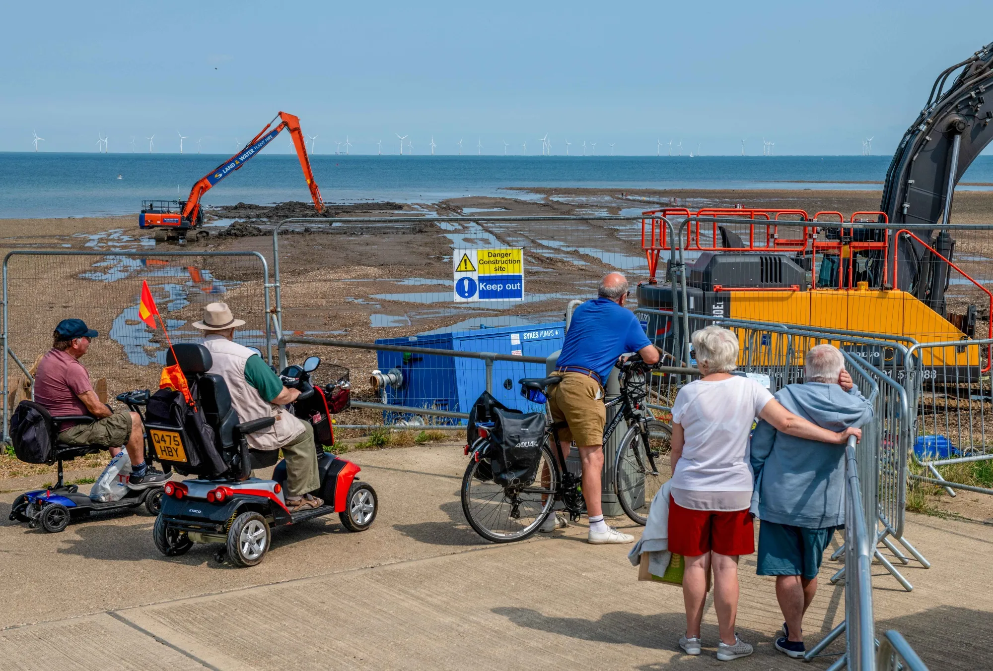旁观者观看南方水务公司在怀茨特布尔的Swalecliffe污水处理厂铺设新排水管道,时间是七月。摄影师:Chris J. Ratcliffe/Bloomberg### 借贷成本上升