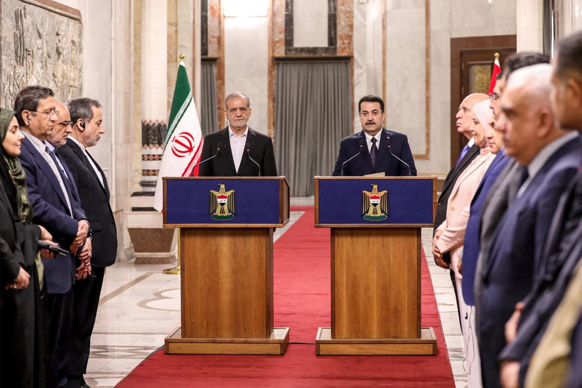 德黑兰对多个伊拉克政治党派和民兵组织拥有广泛的影响力。伊朗新总统马苏德·佩泽什基安上周访问了伊拉克——一个同样以什叶派为主的国家——这是他担任该职务后的首次外访。