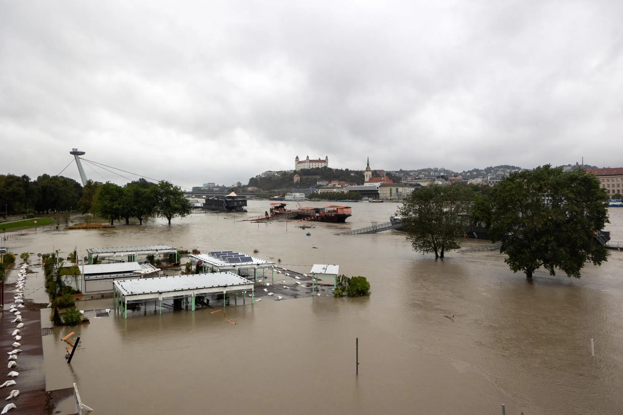 2024年9月16日,斯洛伐克布拉迪斯拉发的多瑙河水位上涨。