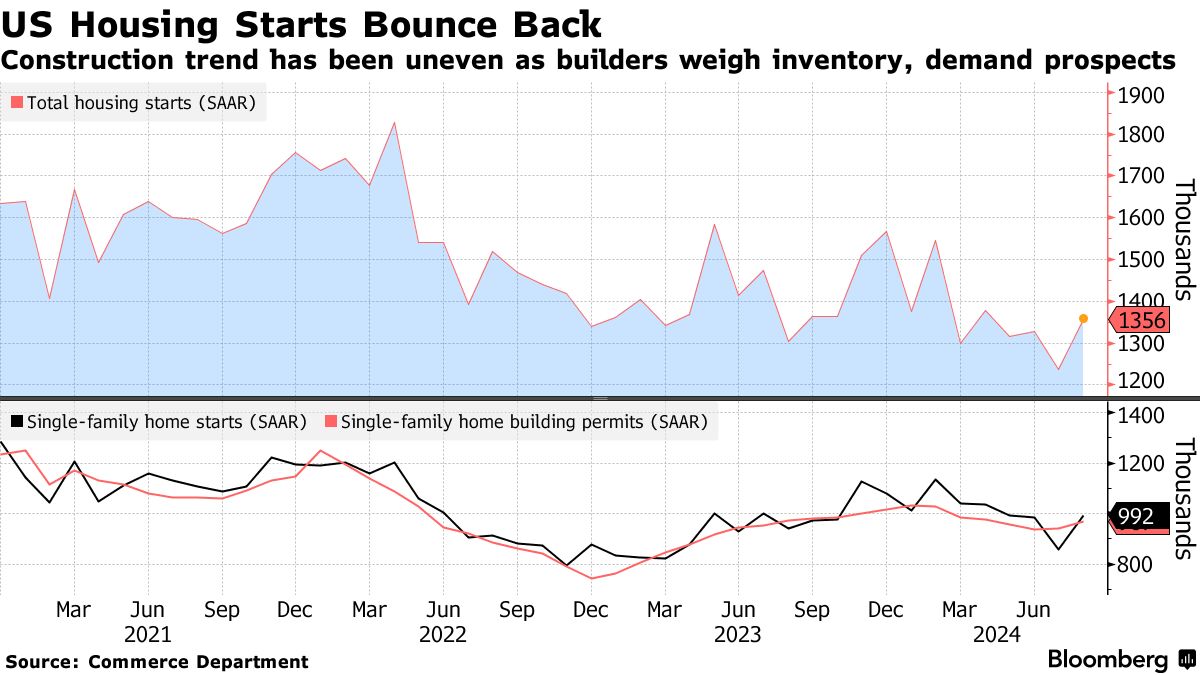 根据周三发布的政府数据显示,上个月新房开工增加了9.6%,达到年化136万套的速度,为四月以来最快。彭博社调查的经济学家中位数预估为132万套。