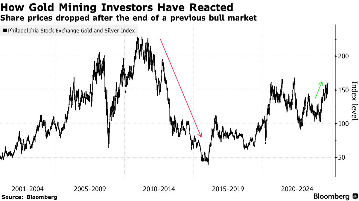 黄金的上涨和成本压力的缓解使资产更具吸引力,尤其是对于那些寻求替换老旧矿山的公司。然而,公司们表示,他们对重蹈之前牛市时期的错误感到谨慎,当时的巨额扩张使他们背负了巨额债务和愤怒的股东。
