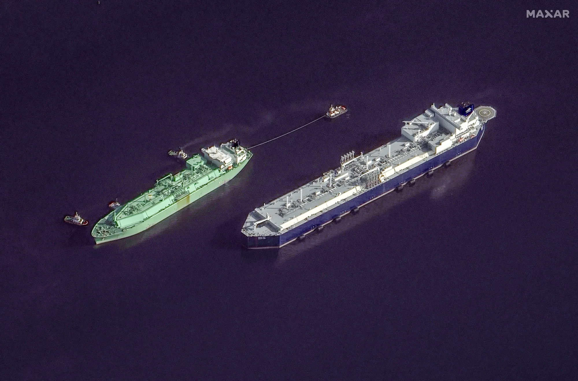 交易商认为这艘船在伪造其位置,这一过程称为“欺骗”——使其在数字跟踪系统上看起来船在一个地方,而实际上它正前往北极液化天然气2号出口终端。8月1日拍摄的卫星图像证实该船停靠在该设施,这是第一艘这样做的船。根据彭博社对卫星图像的分析,紧接着又有两艘船——Asya Energy和Everest Energy——停靠在该设施,同时伪造它们的船舶跟踪位置以显示它们在巴伦支海。Asya Energy在阿曼海岸附近待了几个月,而Everest Energy则来自马来西亚。