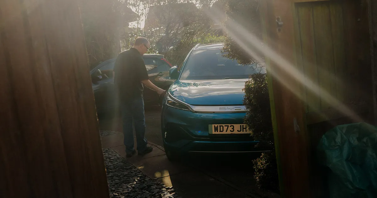凯文·伍德与他的电动车。摄影师:亚历克斯·阿塔克为Bloomberg Green拍摄居住在英国汉普郡的凯文·伍德去年购买了他的第一辆电动车,选择了中国比亚迪生产的Atto 3。十个月后,他 仍然印象深刻 于这款SUV的续航、操控、舒适座椅、行李厢空间和语音控制的天窗。伍德在试驾Atto之前从未听说过比亚迪——但比亚迪的目标正是像他这样的驾驶者。在进入欧盟和英国市场不到两年后,这家汽车制造商正在积极扩展,配合电视和广告牌宣传、汽车展会的优先展示以及赞助2024年欧洲足球锦标赛。到明年年底,比亚迪计划将其在英国的销售和服务网点从60个增加到120个。