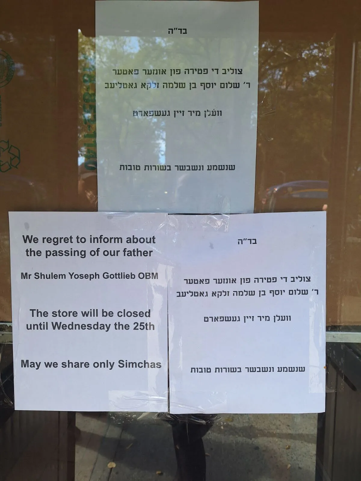 在纽约市Gottlieb餐厅入口处,宣布Shulem Yoseph Gottlieb去世的标志,日期为9月19日。摄影师:Nacha Cattan/Bloomberg这个事件总是让人困惑。