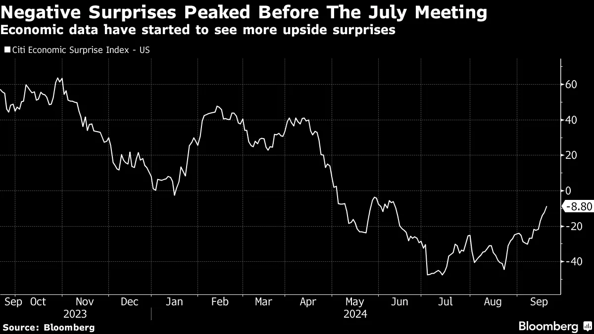 仅仅看一下美国花旗经济意外指数就能告诉你一切。它在七月中旬触底,比七月FOMC会议早了两个多星期,并在会议期间强劲反弹。根据会议记录,数据仍然意外向下时,那是几位美联储官员希望采取预防性降息的时机。