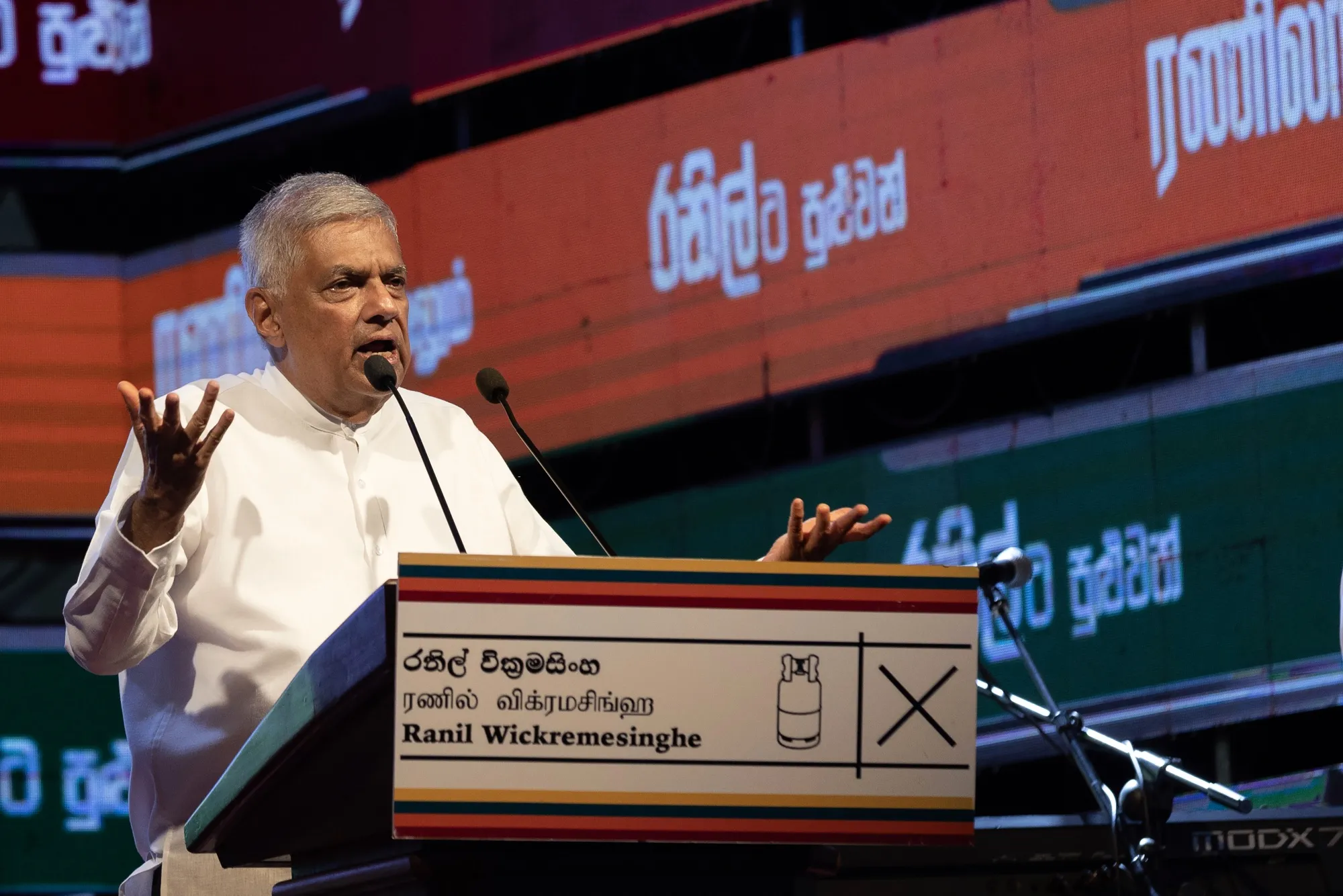 在紧张选举前夕,拉尼尔·维克勒梅辛赫在科伦坡办公室表示:“最大的威胁是试图重新谈判协议。”