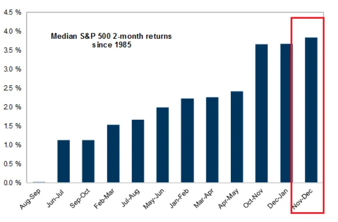 高盛来源:高盛根据高盛的数据,自1900年以来,S&P 500在选举年的11月和12月的中位回报率为3.4%。一旦投票结果确定,Rubner预计股市的广度将改善,并且他预计再通胀交易以及价值股、能源股和新兴市场股票将表现优于大盘。