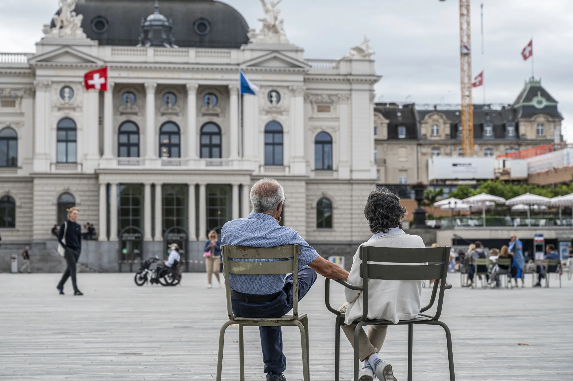 苏黎世市中心歌剧院外的退休人员。