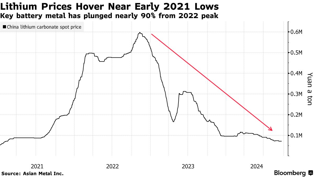 本月中国最大锂矿之一的 停产 对电池金属价格的复苏几乎没有影响。宁德时代科技股份有限公司——更为人知的是CATL——表示正在调整江西宜春矿的产量。尽管该矿是全球最大的锂来源之一,但其他供应商 仍然存在。电池金属——包括锂、钴和镍——在新生产的洪流压倒需求之际,正面临困境,恰逢电动车采用速度放缓。