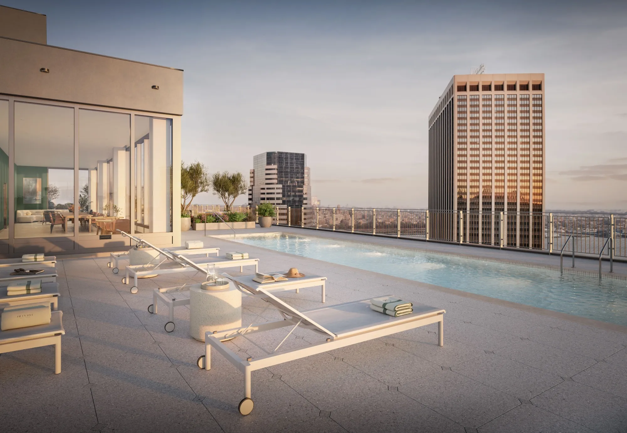 这些公寓拥有10英尺(3米)的天花板、水景和定制的意大利厨房,建筑将配备包括健身和瑜伽中心、宠物洗浴站、屋顶游泳池和烧烤站等设施。