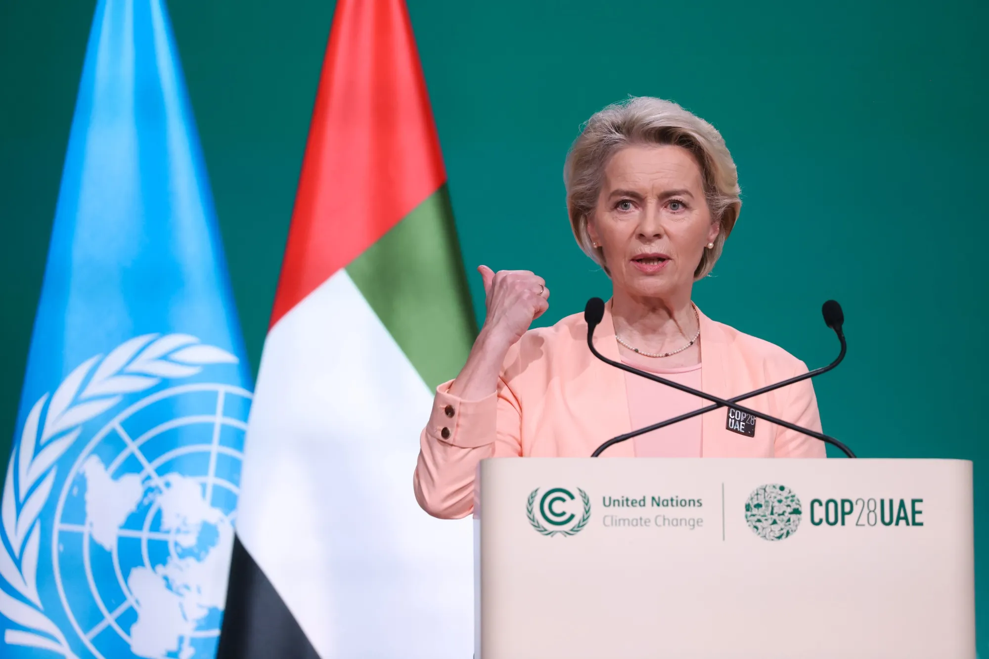 欧洲委员会主席乌尔苏拉·冯·德莱恩在2023年12月1日于迪拜举行的COP28气候会议上发言。