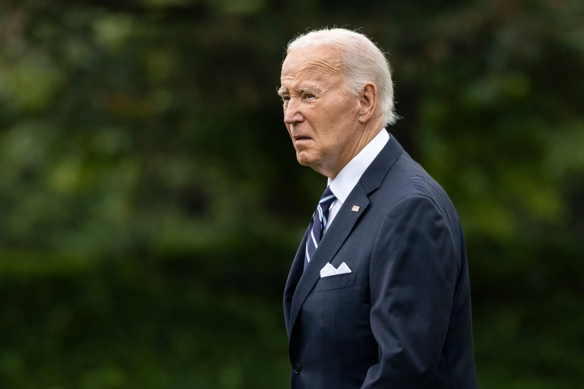 乔·拜登在华盛顿特区白宫南草坪上登上海军一号之前,时间是9月23日。摄影师:塞缪尔·科鲁姆/Sipa/Bloomberg