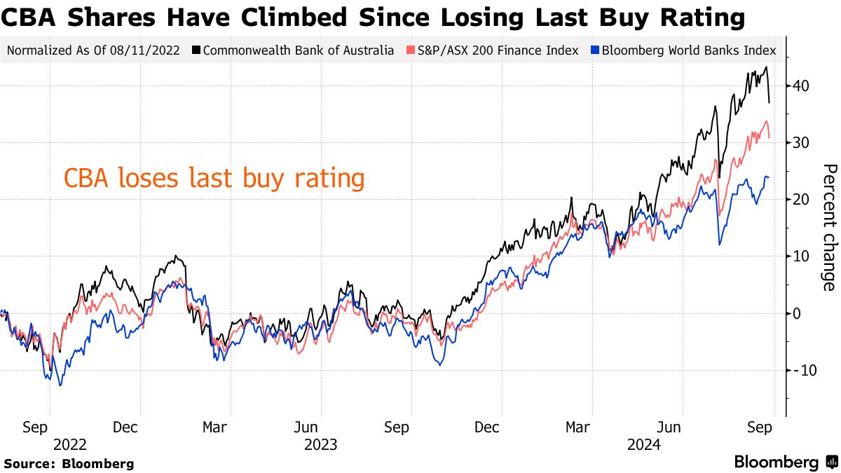 全球最不受欢迎的巨型银行股票(CBA AU)在没有买入评级的情况下上涨37% - 彭博社