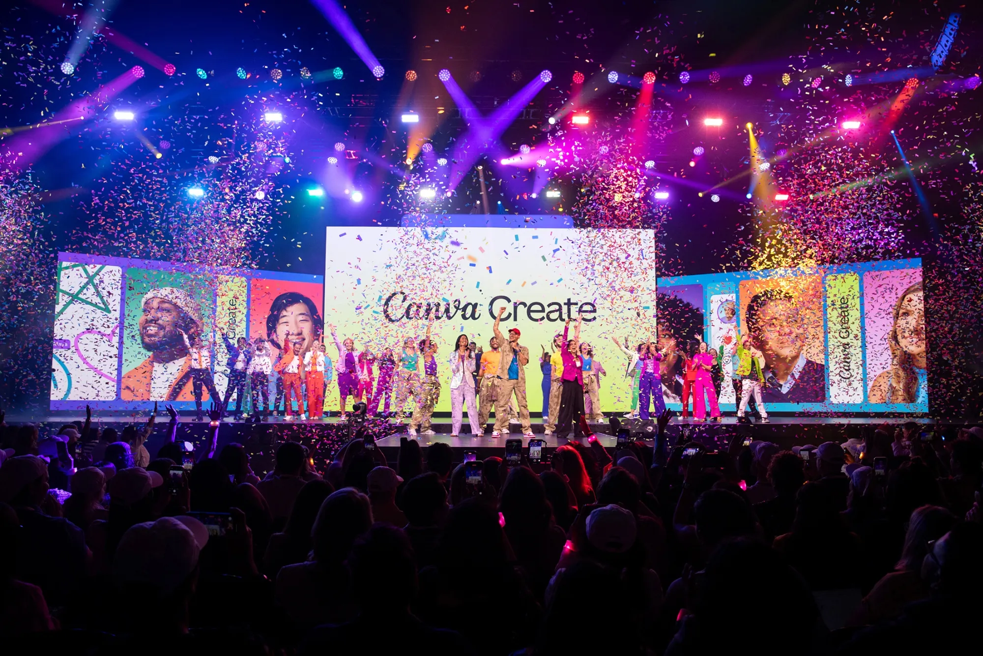 Canva Create上的模拟说唱对决表演成为了数百万观众观看的病毒视频。摄影师:Alisha Jucevic/Bloomberg“你让我看到了Canva Enterprise,现在我们正在崛起,”一位表演者说唱道。观众中的Canvanauts和粉丝们热情回应。但随着表演从YouTube剧院传播到互联网的各个角落,它被嘲讽为科技公司有史以来最令人尴尬的演示之一。