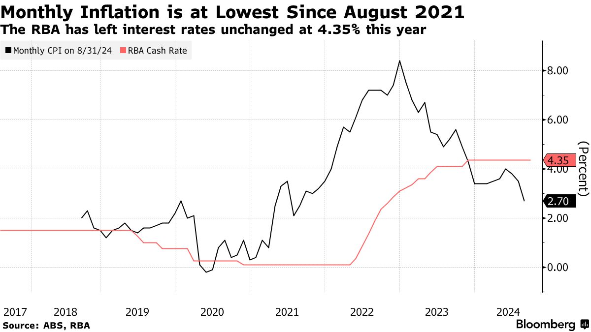 “八月份的两项年度基础通胀指标是过去2.5年来的最低水平,”澳大利亚统计局价格统计负责人米歇尔·马夸特说。