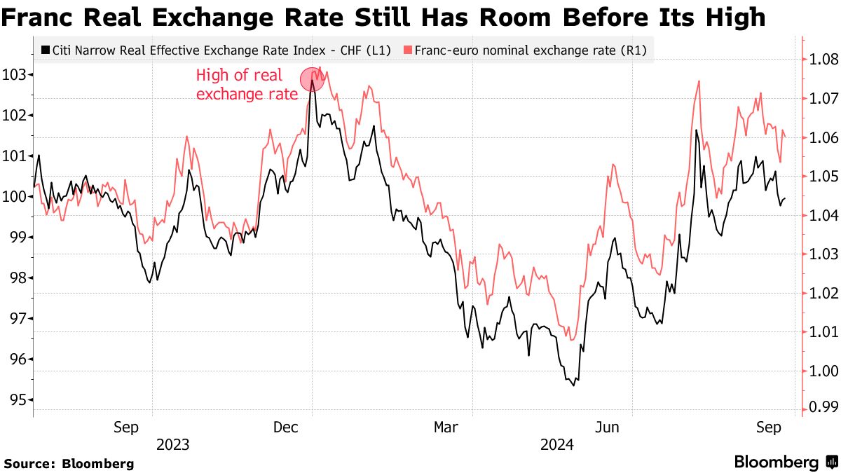 瑞士国家银行过去忽视了这样的请求,未来可能也会如此。此外,经过通货膨胀调整后,法郎的实际汇率——政策制定者偏爱的指标——并没有出现如此升值,这表明强势货币目前可能对公司而言是更大的担忧,而不是对政策制定者。