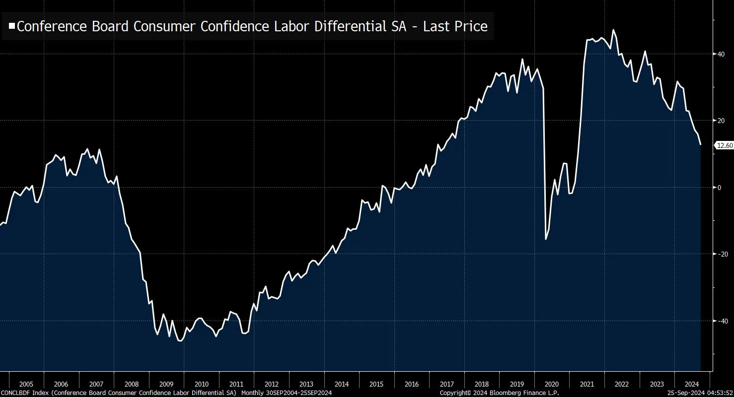 昨天我们得到了最新的会议委员会消费者信心指数,显示劳动差异指数(认为工作充足的受访者与认为工作难找的受访者之间的差距)持续下滑。