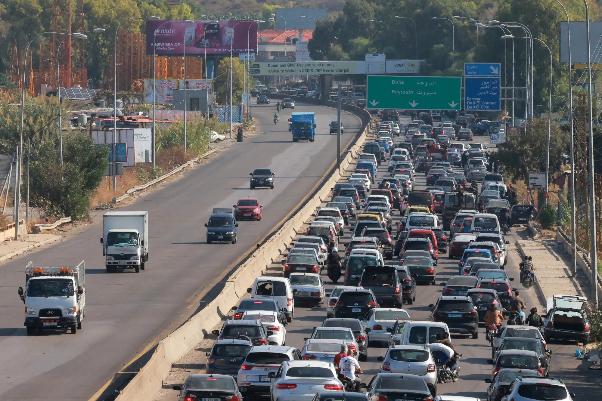 在达穆尔,贝鲁特南部,9月24日,人们逃离黎巴嫩南部时的交通。摄影师:易卜拉欣·阿姆罗/法新社/盖蒂图片社敌对行动可能会加剧黎巴嫩五年来所遭受的经济和政治混乱。通货膨胀率为35%,该国在临时政府下,未能偿还数十亿美元的国际债券。
