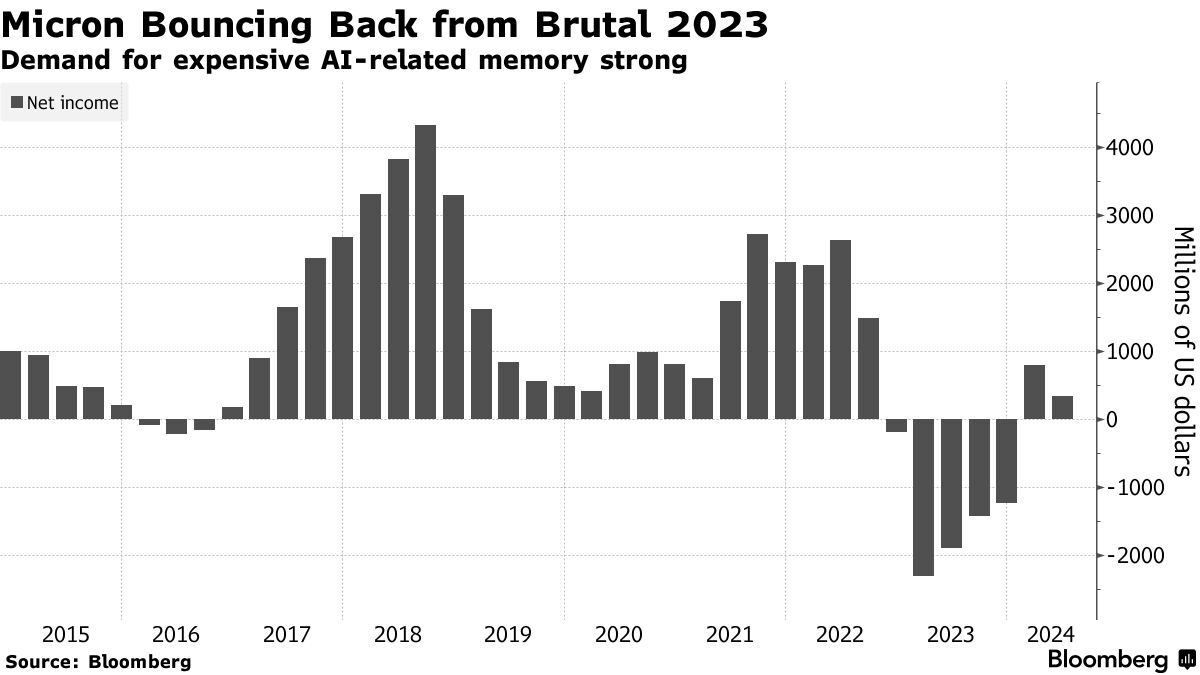 美光(MU)在人工智能推动内存需求后给出了强劲的预测 - 彭博社